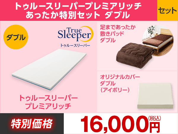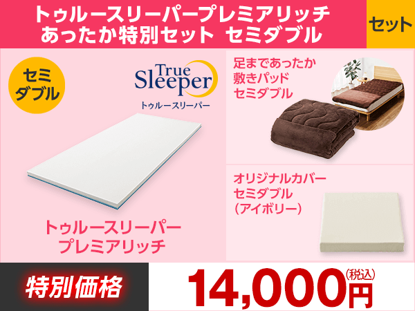 トゥルースリーパー プレミアリッチ×1、足まであったか敷きパッド×1、トゥルースリーパー オリジナルカバー×1