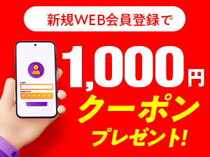 WEB会員登録キャンペーンWEB会員登録されたお客様にもれなく、次回以降ご使用いただける1,000円クーポンプレゼント! -
