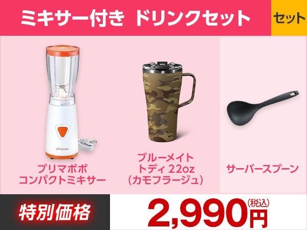 本体×1、クロスブレード×1、フラットブレード×1、カップ(大)×1、電子レンジ用カップ(小)×1、保存用キャップ×1、穴あきキャップ×1、電子レンジ用キャップ×1