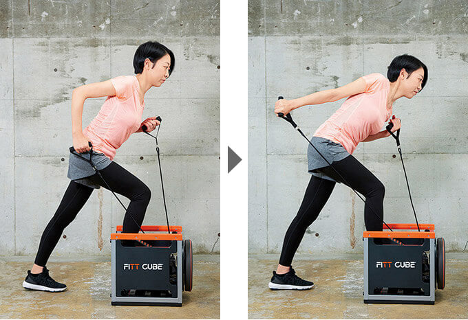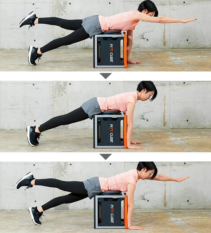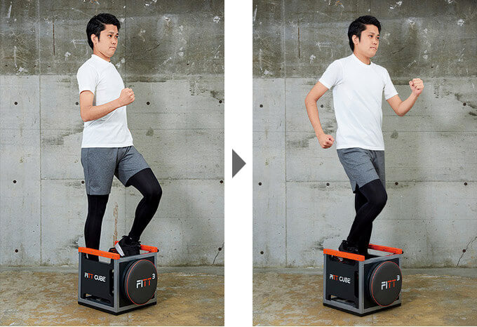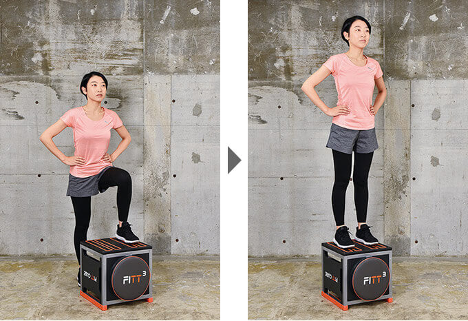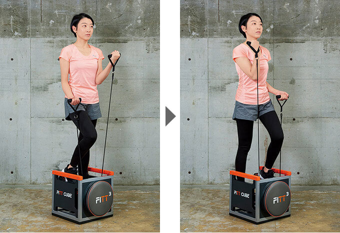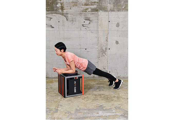 ゆっくりとしたテンポで行いましょう。できるだけフィットキューブと近い位置で上下運動しましょう。