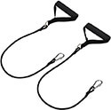 - ① ペダルに両足を片足ずつゆっくりと乗せ、両手にレジスタンスバンドのグリップを持ちます。