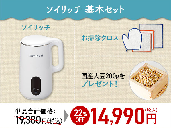 ソイリッチ×1、吸水クロス×1、乾燥大豆(フクユタカ)200g×1