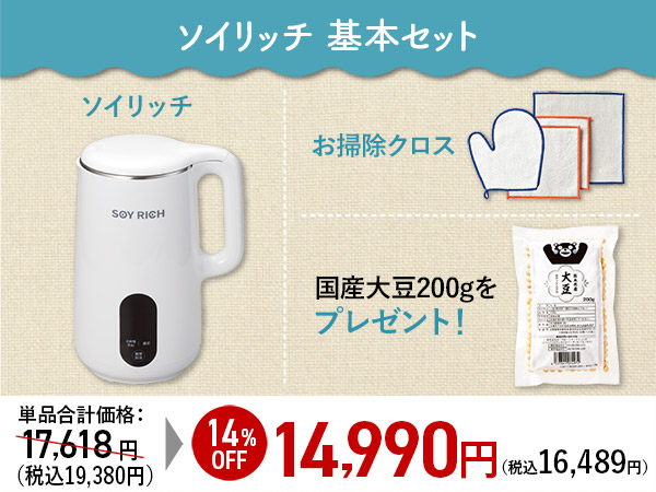 ソイリッチ×1、吸水クロス×1、乾燥大豆(フクユタカ)200g×1