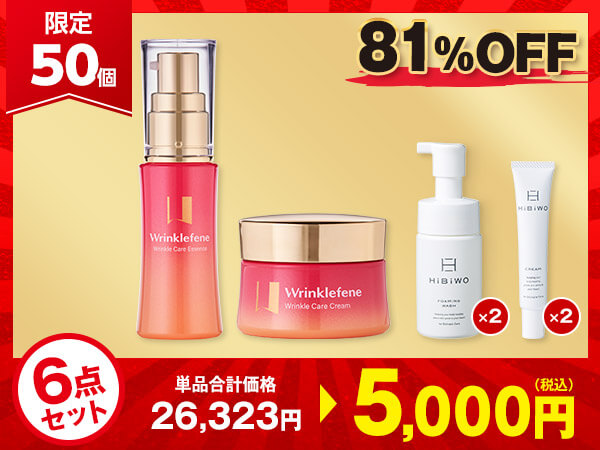 薬用シワ改善美容液×1、薬用シワ改善クリーム×1、薬用デリケートデオウォッシュ×2、薬用ディープモイスト美白クリーム×2