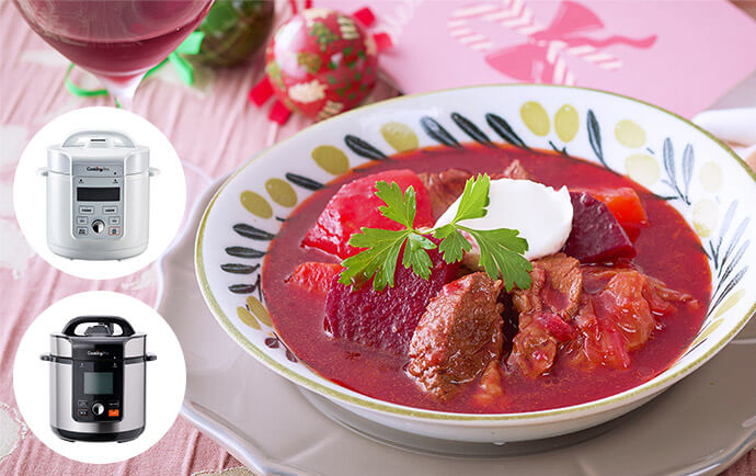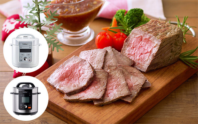 クッキングプロなら本格的なローストビーフが誰でも簡単に作れます。もちろん煮込みやスイーツなど豪華なおもてなし料理も、ボタン1つでおまかせOK!