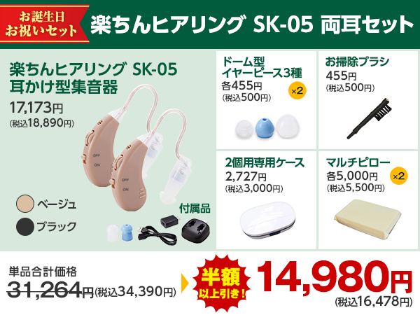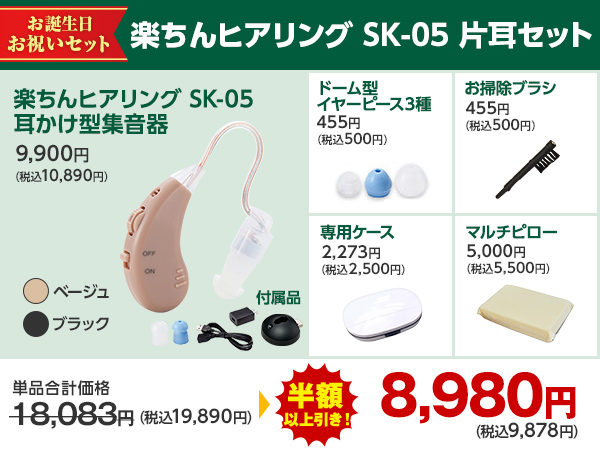 充電式耳かけ型集音器 楽ちんヒアリング SK-05 片耳セット