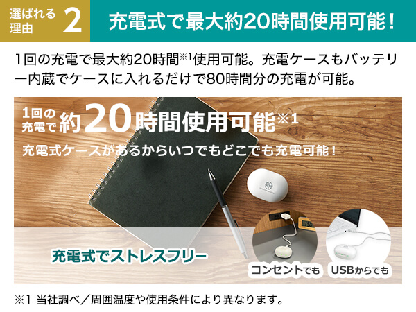 [リチウムイオン電池] 3.7V(本体:22mAh、充電ケース:300mAh)