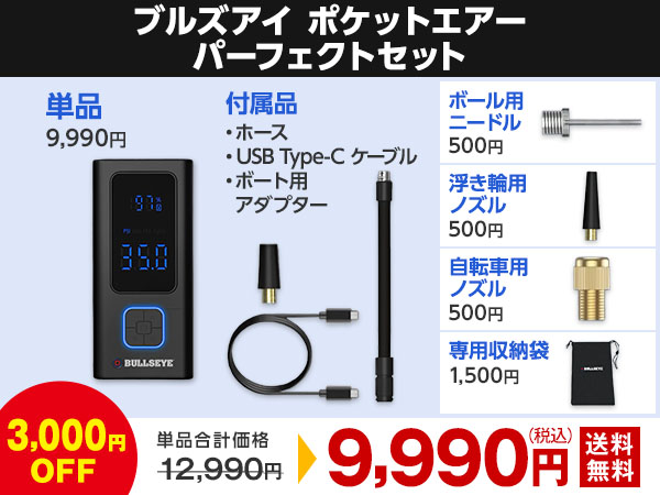 4種の専用アタッチメント付きで様々な空気入れに対応
