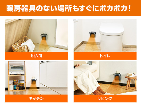 暖房のない脱衣所・トイレ・キッチンでもすぐに暖かく快適