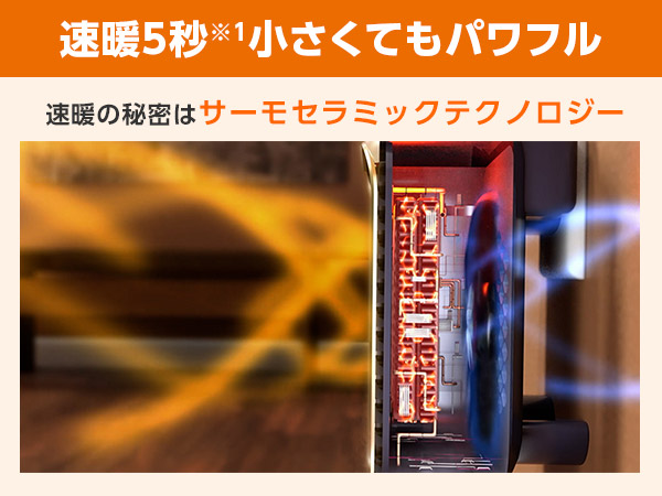 取り込んだ冷気を速暖性に優れた「PTCヒーター」で発熱し、毎分およそ5,300回転の強力なファンでパワフルな温風を一気に送り出します。