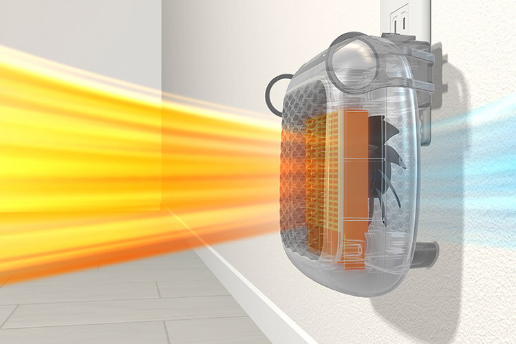 取り込んだ冷気を速暖性に優れた「PTCヒーター」で発熱し、毎分およそ5,300回転の強力なファンでパワフルな温風を一気に送り出します。