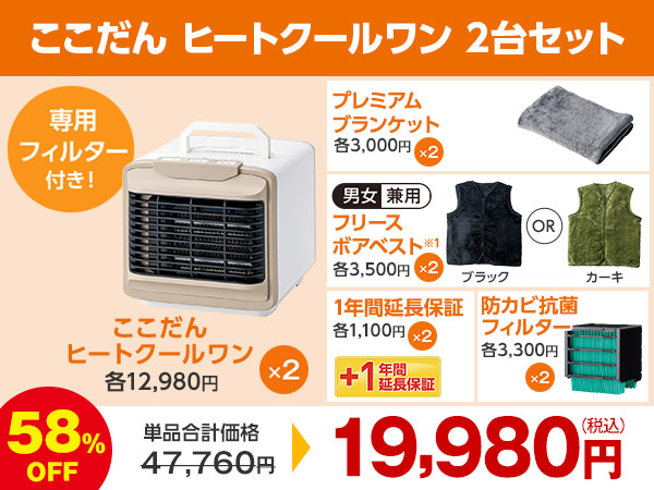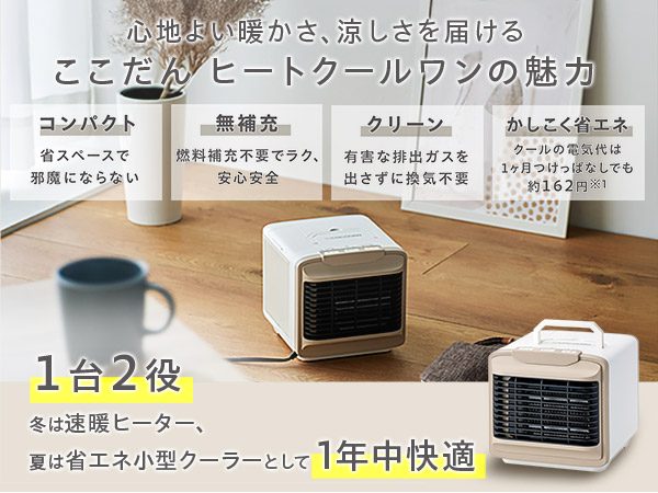 - 1 ヒートクールワンのヒート(強)の消費電力600W 1kWh:31円で計算/使用条件によって異なります。