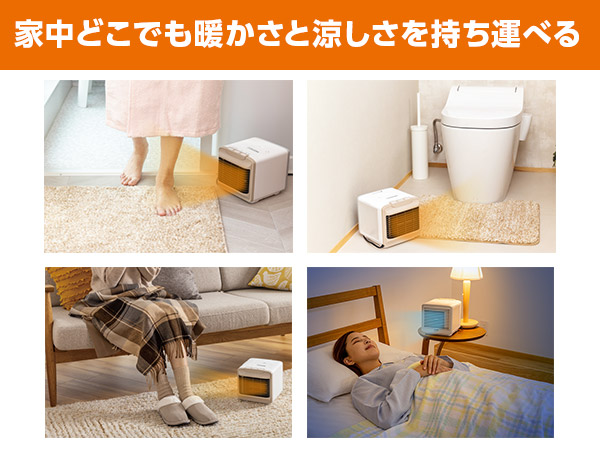 モーターが逆回転する特許取得の技術により、温冷風扇カテゴリー市場最小※1クラスのヒーター・クーラー、1台2役を実現。