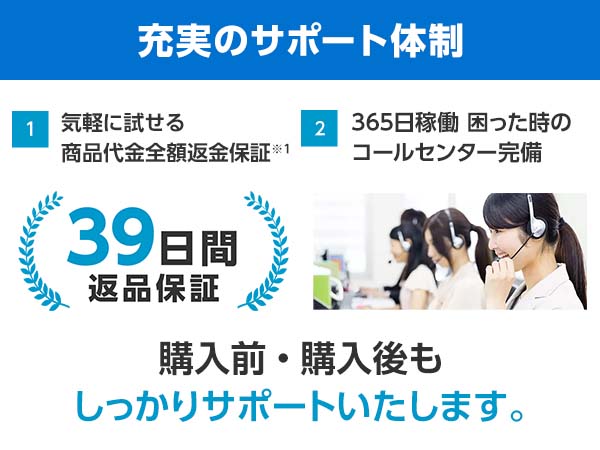ショップジャパンは自社のコールセンターで研修を受けた専任のスタッフが対応を行っています。購入後も電話で丁寧にサポートさせていただきますのでご安心ください。