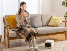 石油やガスなど火を使わない電気式のヒーターだから、CO2排出量がゼロ。換気する必要がないため、狭い場所でも安心して使用可能。せっかく暖まった部屋の窓を開けて、部屋中に寒い空気が充満してしまう、なんてこともなくなります。