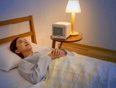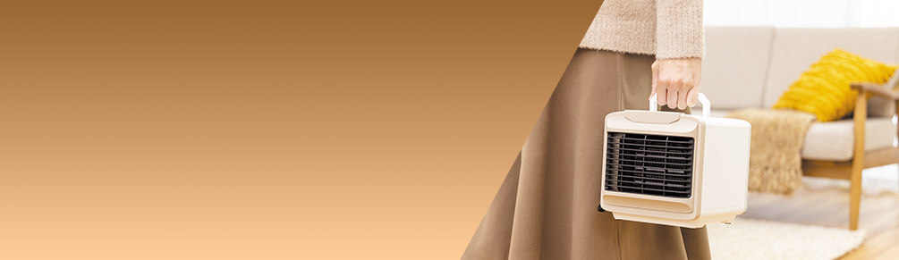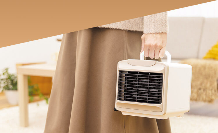 冬は速暖ヒーター、夏は省エネ小型クーラー