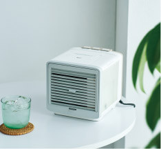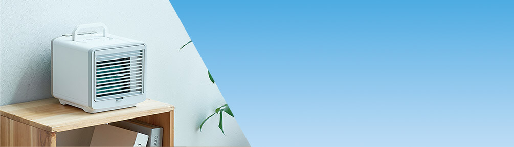 水をタンクにセットしてクールスイッチを押すだけで、扇風機より涼しい風を実現!
