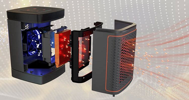 取り込んだ冷気を速暖性に優れた「PTCヒーター」で発熱し、毎分およそ4,500回転の強力なファンでパワフルな温風を一気に送り出します。