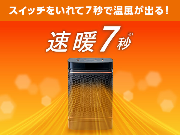 - 1 室温14.4℃で吹出口付近(距離1cm)の風が暖かいと感じるまでの時間。被験者3名の体感による。使用条件により異なります。