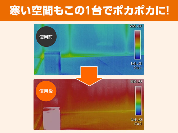 試験条件:室温14℃・湿度50%・18分間の室内温度を計測/結果は試験条件や使用条件により異なります
