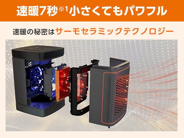 取り込んだ冷気を速暖性に優れた「PTCヒーター」で発熱し、毎分およそ4,500回転の強力なファンでパワフルな温風を一気に送り出します。