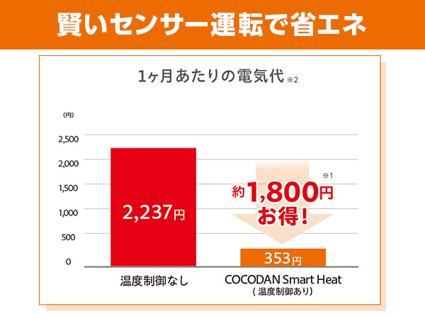 - 2 電気代試算(1Wh=0.031円)1日2時間×31日の場合 温度制御なし想定:約2,237円/温度制御あり:約353円