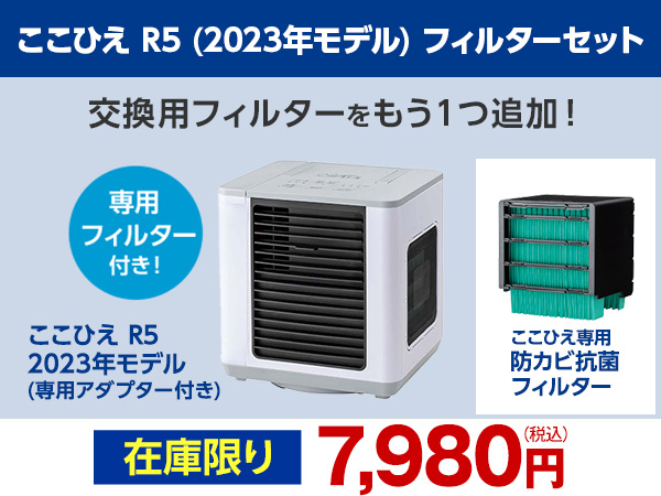 本体(USBケーブル付き)×1、防カビ抗菌フィルター×2、ここひえ専用USB電源アダプター×1、取扱説明書×1