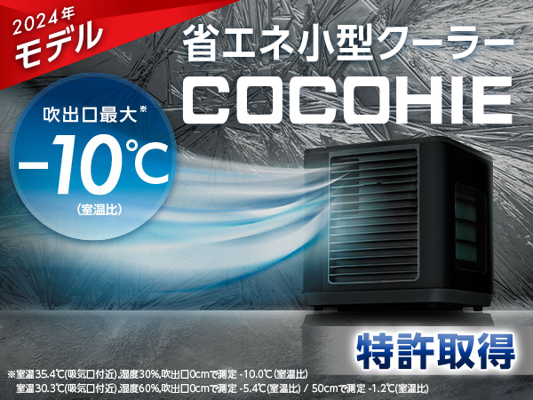 水が蒸発する際に、周りの熱を吸収して空気を冷やす“気化熱現象”を利用した技術で、パワフルに冷却!自然の涼しさを利用した優しい風を体感できます。