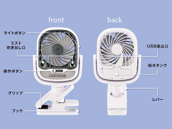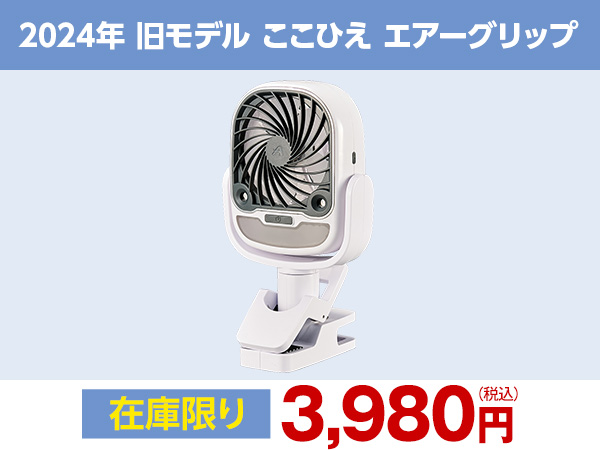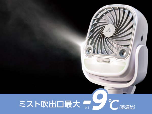 - 試験条件:室温37℃、湿度20%、吹出口20cmの2分後の顔の表面温度を計測/試験条件や使用条件によって異なります。ここひえ エアーグリップのミスト機能有りと無しの比較で測定(当社比)