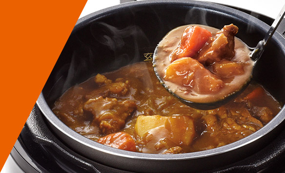 通常調理では時間も手間もかかる角煮が、圧力鍋であっという間にやわらかジューシーに。とろとろコクうまの角煮が、時間も手間もかけずにカンタンに仕上がります。(材料・分量は同梱の「おまかせレシピ」に掲載)
