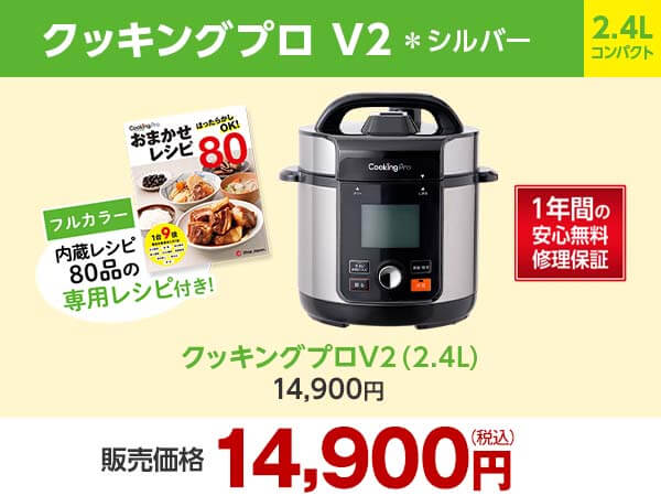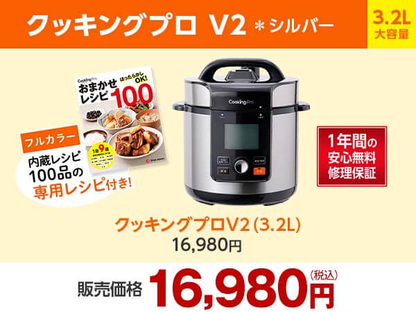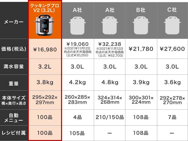 - 従来品クッキングプロ調理圧力50kPaに対し、現行品クッキングプロV2調理圧力80kPa