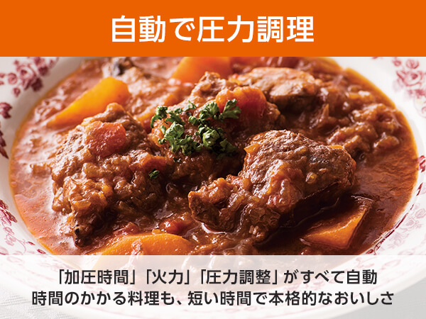 「加圧時間」「火力」「圧力調整」がすべて自動