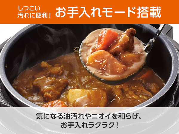 さらに内なべは取り外して洗えます。一般的な圧力鍋のように重たい鍋ごとゴシゴシ洗う必要がありません。焦げ付き防止加工だから洗いやすく、圧力調理がますますお手軽になります。