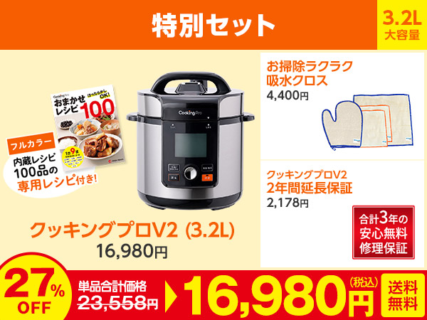 - 従来品クッキングプロ調理圧力50kPaに対し、現行品クッキングプロV2調理圧力80kPa