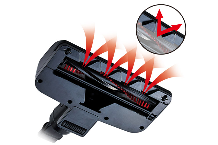 高速回転モーター搭載の床用ヘッドです。ブラシがいろいろな種類のゴミを掻き出して床をキレイにお掃除します。畳にもご使用頂けます。