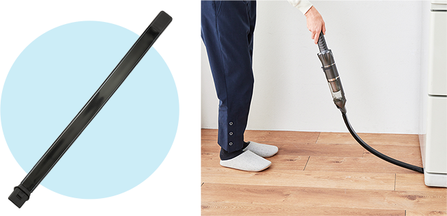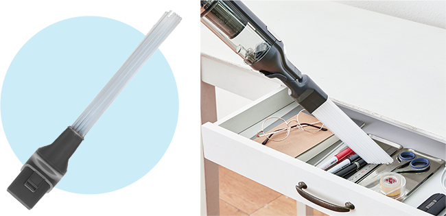 40本以上の筒状ノズルが小さなものだけを吸い込むので引き出しの中のほこりや、靴箱の砂など、ものをどかさずに掃除できるのが便利。
