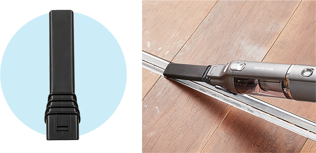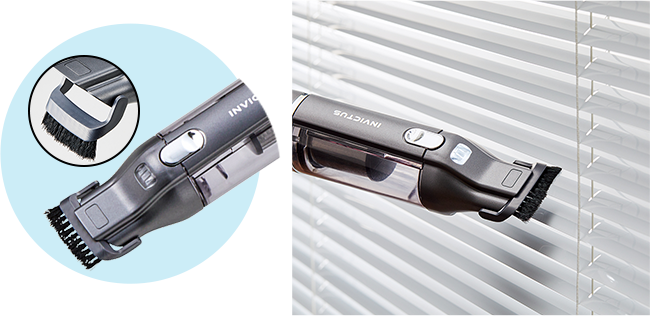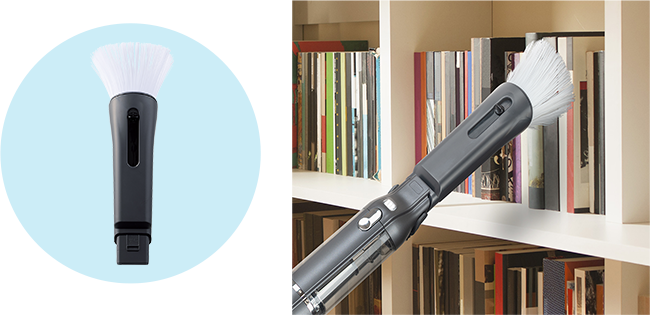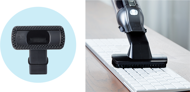 毛足が短く吸い口の広いブラシ。奥に入り込んだほこりをかき出しながら吸引。