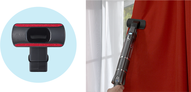 柔らかいパイル付きの吸い口の広いブラシ。ブラシで生地を傷めることなく、表面に付着したほこりや髪の毛などを絡めとって吸引。