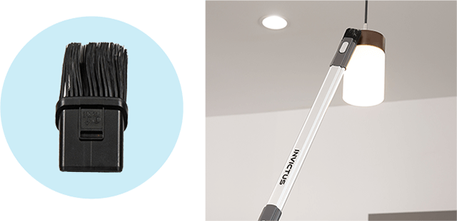 付属の延長パイプとフレキシブルノズルを付ければ、3m先の高所のお掃除もラクラク。脚立を使う必要もなく安全なのに変わらず片手で操作できる軽さです。