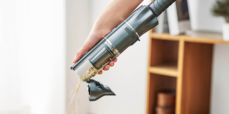 ワンプッシュで簡単にゴミが捨てられるから、手にゴミが触れることなく衛生的。紙パック交換など煩わしい手間もありません。
