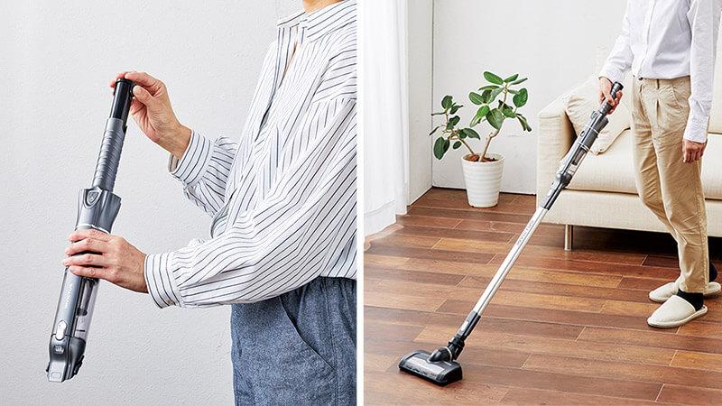 自立型だから好きな場所に設置できて、お掃除したいときに本体とアタッチメントをサッと取り出せる!