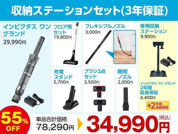 充電スタンドで卓上収納したり、自立式の専用収納ステーションでアタッチメントをまとめて収納したりお掃除スタイルに合わせて収納方法をお選び頂けます。専用収納ステーションはアタッチメントの収納だけではなく、本体の充電も可能です。