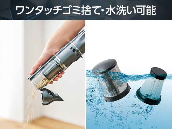 フィルターは取り外して簡単に水洗いができるので、ゴミも残らずいつも清潔をキープ!
