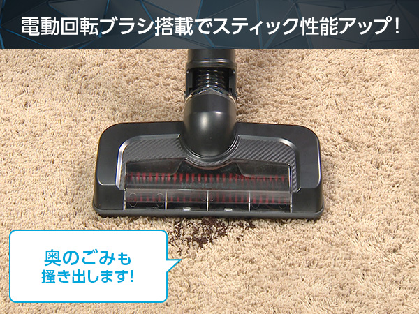 回転ブラシ付きに進化したことで吸い残りがこんなに違う!カーペットの中に入り込んだゴミだって掻き出しながら徹底お掃除。 吸い残りだってもう気になりません。