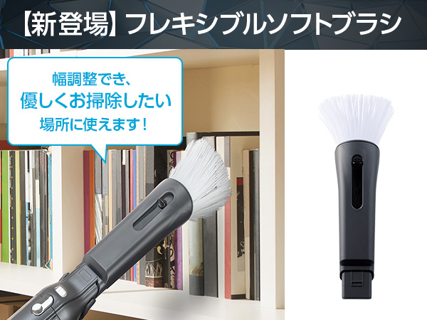 PC画面やTV画面など、デリケートな電子機器の表面ホコリ掃除に大活躍。ブラシの幅を調整できる柔らかいブラシで優しくお掃除したい場所に使えます!