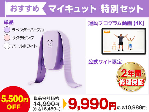 マイキュットでは普段しない動作である「挟み込み」を行うことに加え、振動が起こりそれを抑えることで内転筋がより効果的に働きます。整形外科医の観点からも理にかなっており、非常に取り組みやすい、これは効くなと思いました。内転筋を鍛えることは骨盤底筋の強化にもつながり、下半身の衰えが気になる方や今後のために対策したい方におすすめします。