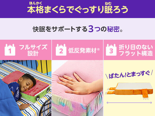 頭をやさしく支えながら、圧力を分散し、快適に眠れます。