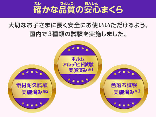 有害物質の有無を検査し、お子さまが使っても安心な品質を確認しています。