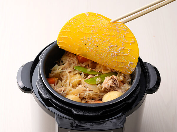 本体(ふた、なべ)×1、電源コード×1、しゃもじ×1、計量カップ×1、お手入れ用ピン×1、取扱説明書×1、おまかせレシピ80×1