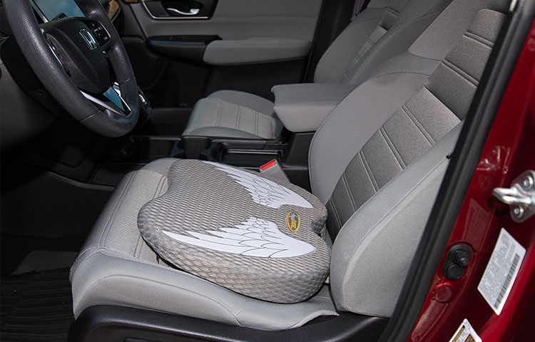 高密度メモリーフォームが座った瞬間やさしくフィットし、腰や背中をサポート。長時間のドライブでもお尻が痛くなりにくく、快適な座り心地が続きます。